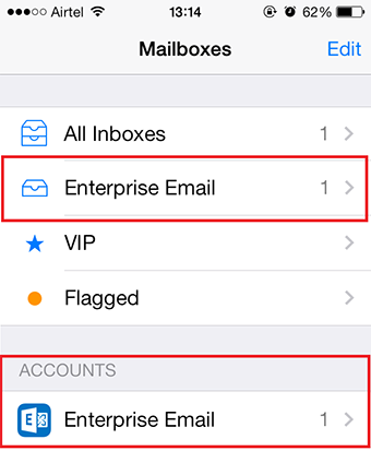 You can now access your Enterprise Email Account from the Mail option on your iPhone.