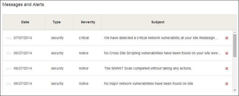 This section displays messages / alerts generated by the scans on your website.