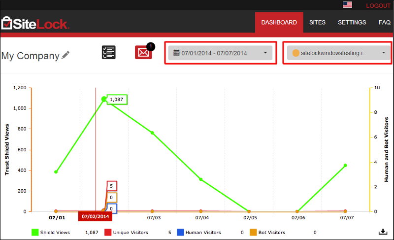 For quick management, you can toggle between the websites configured under your SiteLock Panel as shown below.