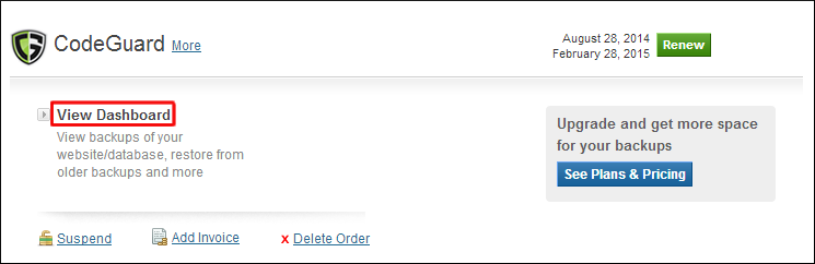 2. Click the View Dashboard link to visit the CodeGuard dashboard.
