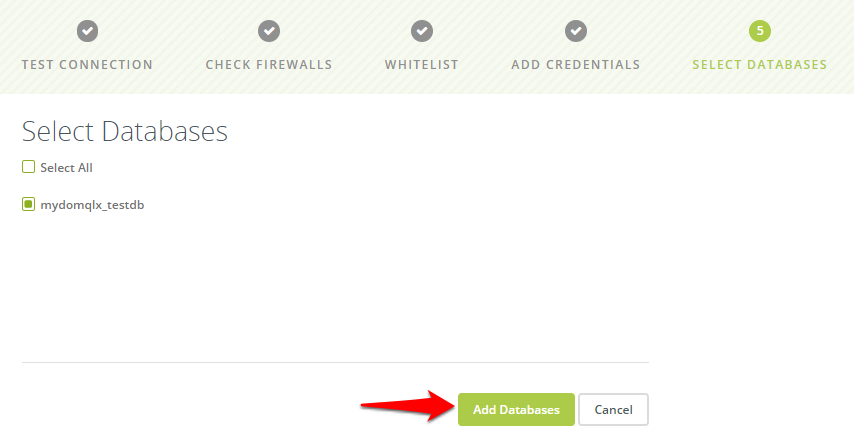 Select the database to be added and click on the Add Databases button. CodeGuard will then start an initial backup process.
