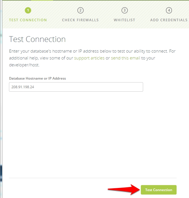 During the initial addition of a database to CodeGuard, you can test the server connectivity by providing the database hostname or the IP address.