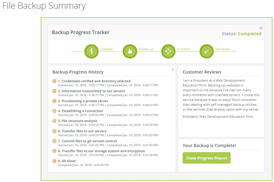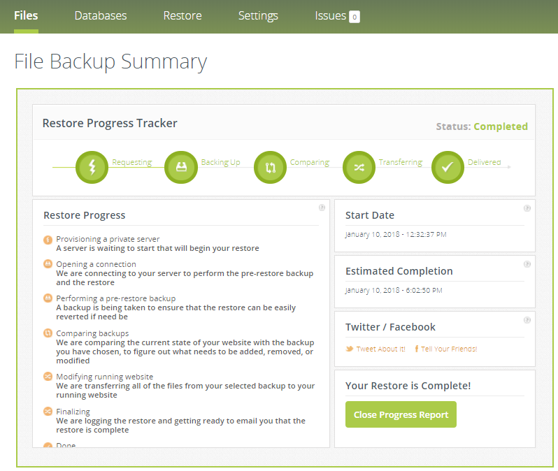 This completes the process of adding a website and a database to your CodeGuard account. CodeGuard will now regularly check your website and database and will take a backup if any changes are detected.
