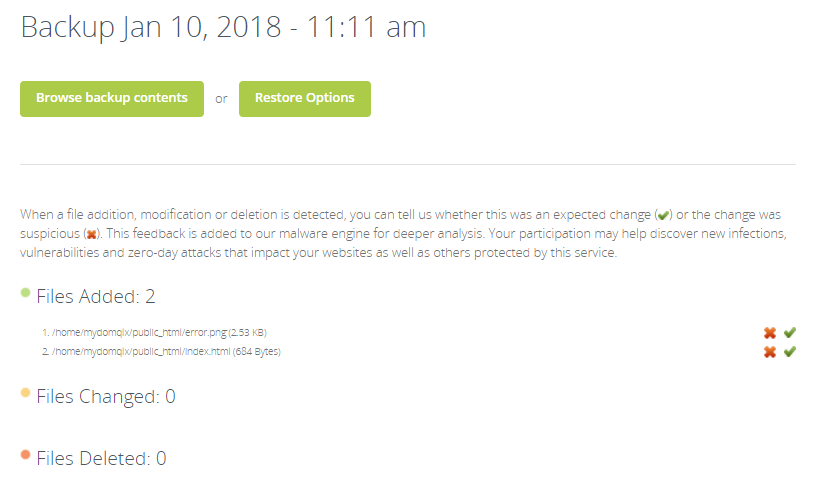 Selective Restore (applicable only for website restore): Specify a file to be restored and CodeGuard will restore that file from a backup