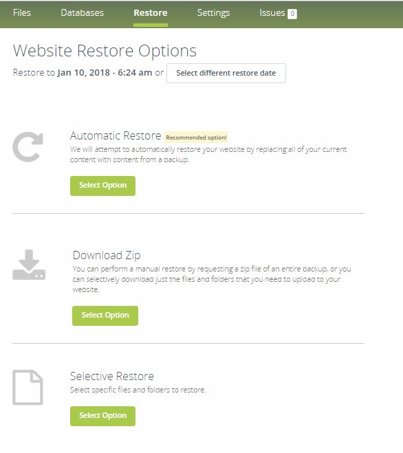 Automatic Restore: CodeGuard will automatically restore your website by replacing all of your current content with content from a backup