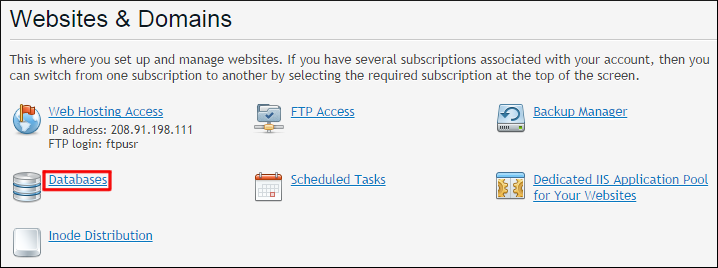 - If you have not yet configured a database for your website, click Databases on the navigation bar and then click Add Database.