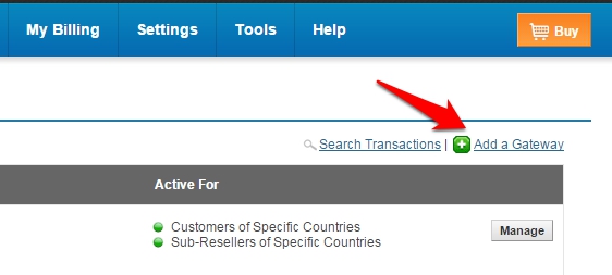 • No Transactions: will disable the gateway for your customers and sub-resellers.
