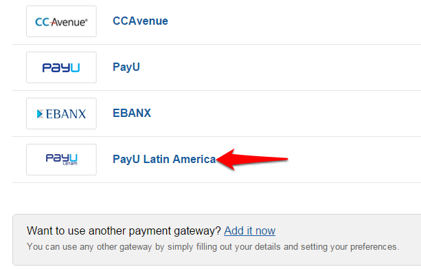Step 3: Select the PayU Latin America payment gateway.