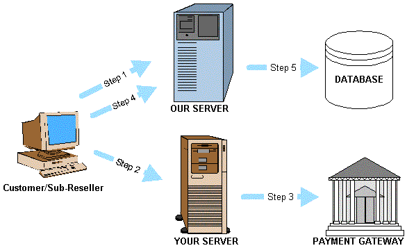 You then redirect the Customer back to our Server with a status of the transaction as to whether you have successfully charged the Customer / Sub-Reseller.